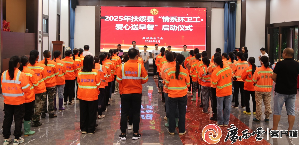 8月29日,扶绥县总工会举行“情系环卫工·爱心送早餐”活动启动仪式。本次活动将持续60天,为该县城区早班环卫工人发放爱心早餐共计28860份,以一份份热气腾腾的早餐,向默默耕耘的“城市美容师”传递来自“娘家人”的温暖与关怀。